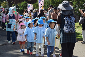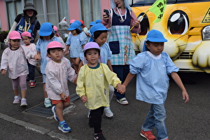 少し幼稚園で遊んでから、果樹園までは歩いて出掛けることに。