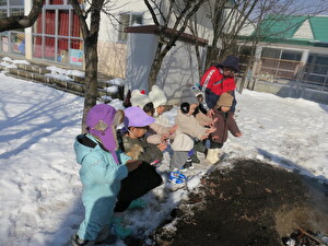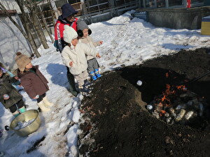 焚き火の場所は預かり保育さんのお友だちが穴を掘ってくれていました。