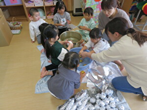 たくさんお手伝いをしてくれた、満3歳クラスのすみれ組のお友だち。