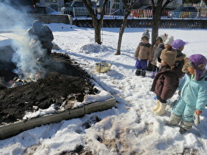 園庭にあった木や落ち葉を少し混ぜて